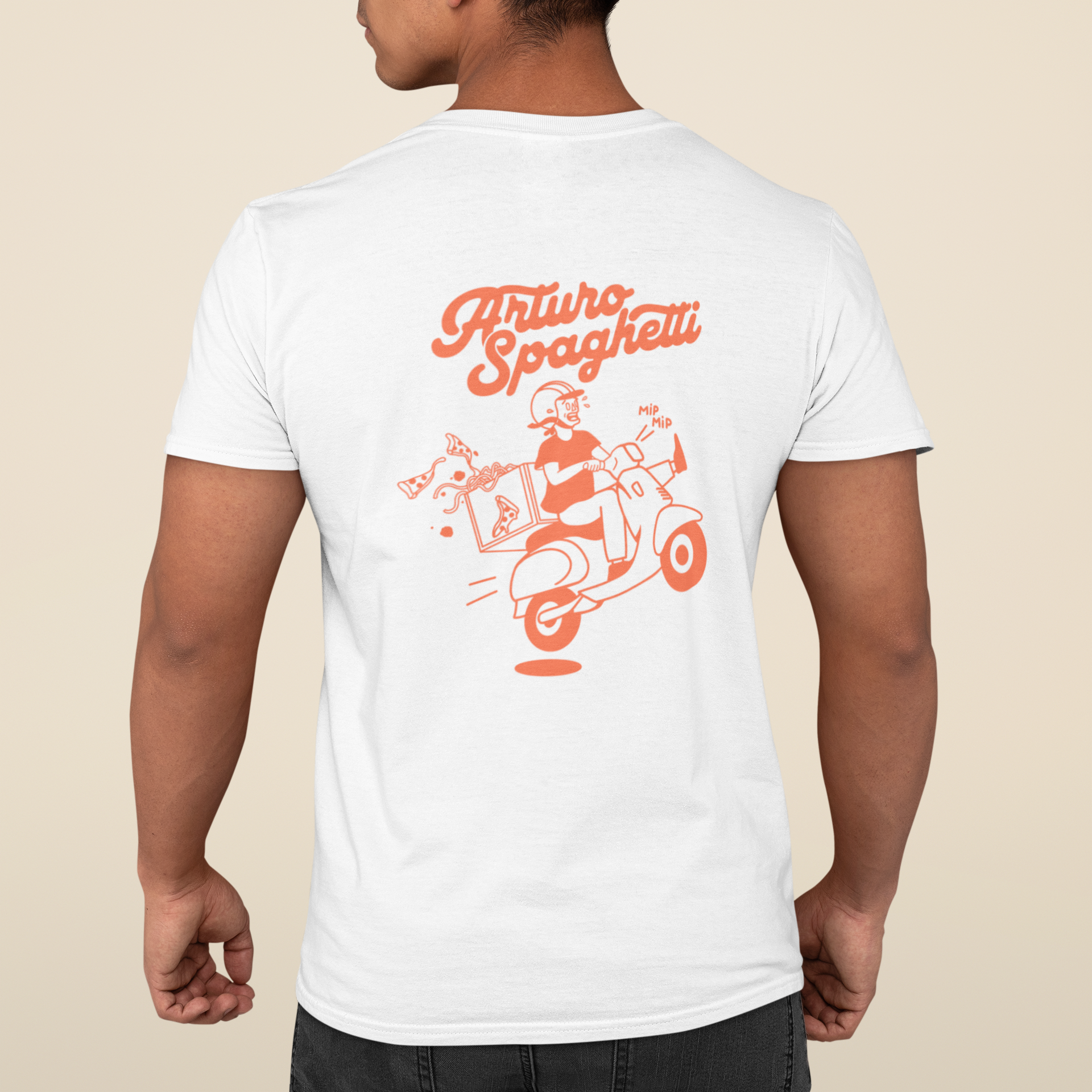 Ce t-shirt unique présente Arturo Spaguetti, une trattoria imaginaire où la sauce coule à flots et la bonne humeur est toujours au menu. Illustration originale imprimée sur un coton doux et confortable, idéal pour une sortie entre amis, un barbecue du lundi ou un souper spaghetti. Un must pour les amateurs de pizza!